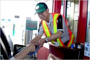 4. ที่ด่านขาออก ยื่นบัตรผ่านทางให้กับเจ้าหน้าที่และชำระเงินค่าผ่านทางด้วยเงินสดหรือบัตรเครดิต การชำระด้วยเงินสด ต้องชำระเป็นเงินเยนญี่ปุ่นเท่านั้น